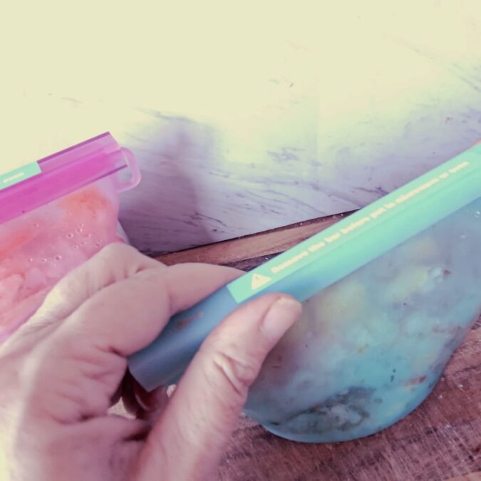 Silicone food storage bags are great and I’ve been using them in my own kitchen for freezing pre-prepped vegetables. They seal tightly, prevent freezer burn and they’re washable so I can use them over and over again.