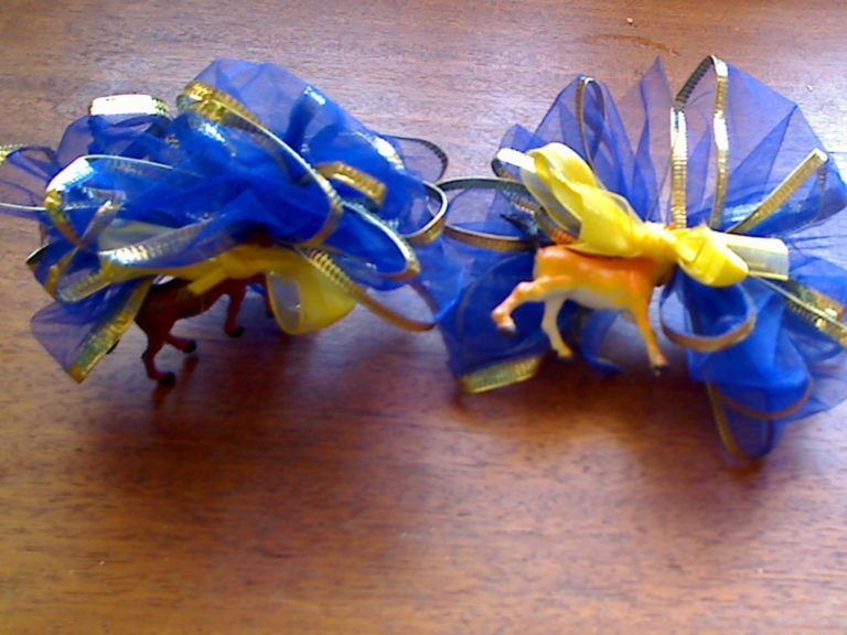- At this point you can add a trinket. I put my horse in the front of the ribbon.