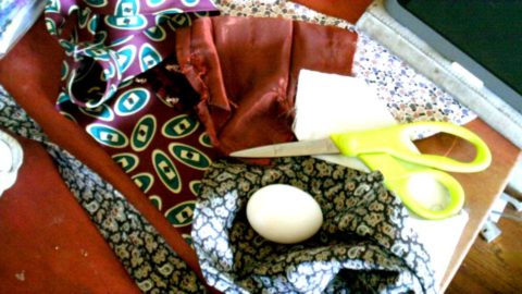 - Wrap the uncooked egg a piece of silk, the shiny side touching the egg. Secure it with a twist tie.