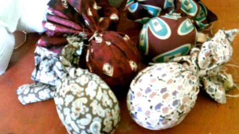 Silk tie dyed eggs were the star of my Easter table a few years ago, and I thought I should share again how to make them. I still have some leftover ties, so that I will make new ones again. They are very easy to make and look stunning. It’s a great way to use up old silk ties, blouses, shirts, etc.