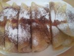 If you have leftover crepes, you can put parchment paper between them and put them in the refrigerator. To warm later in the microwave, put a crumbled damp paper towel in with them so they don’t dry out. Heat them for 20 to 30 seconds.